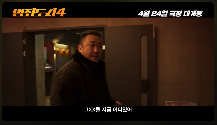 오늘은 범죄도시4 개봉을 앞두고 범죄도시4가 이전 시리즈와 얼마나 다를지 살짝 맛을 봐봤는데요! 범죄도시 1편의 향수를 느낄 수 있을지 기대가 됩니다! 이번 주말에 친구 혹은 연인끼리 같이 영화를 보는 것도 좋아 보입니다! 잔인한 장면을 간접적으로 표현했다고 하니 너무 걱정 안 하셔도 될 것 같습니다!