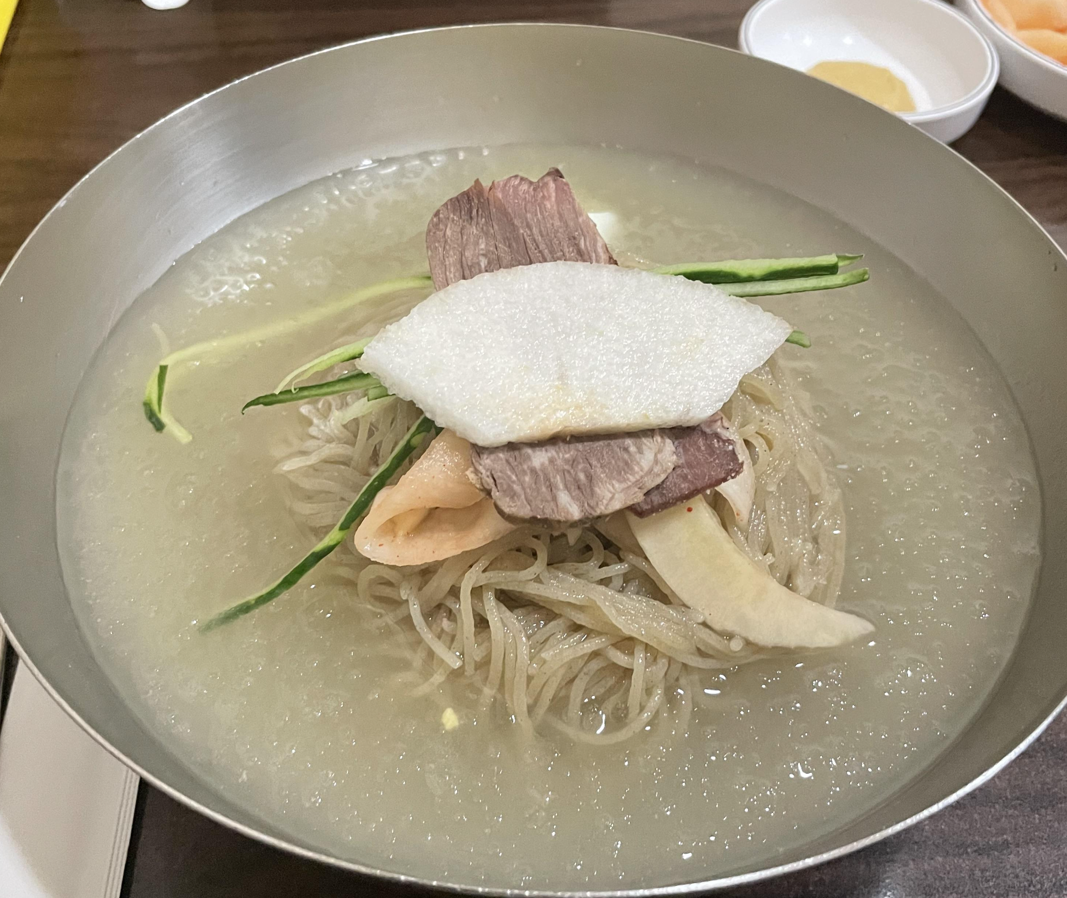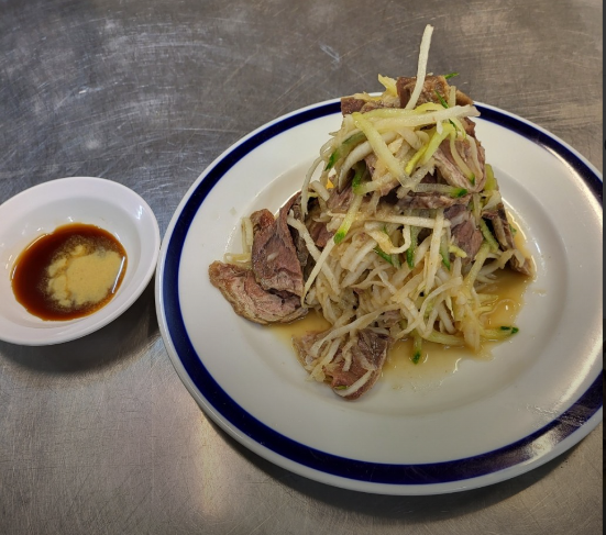 평양냉면을 먹을 때는 돼지 수육도 같이 먹어야 한다고 말해줬는데요! 평양에서 오신 분들께서 알려줘서 사장님께서 함께 만들기 시작했다고 합니다! 사장님이 어떻게 평양냉면을 만들기 시작했는 지 궁금하시지 않나요? 사장님의 지인이 평양에서 요리사를 하셨는데 그때 요리법을 알려줘서, 그 기회를 시작으로 장사를 시작했다고 합니다!