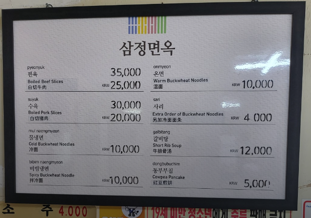 46년 이상의 전통을 자랑하는 삼정면옥은 면을 직접 뽑아서 사용하고 있어 부드럽고 찰지기로 유명합니다!