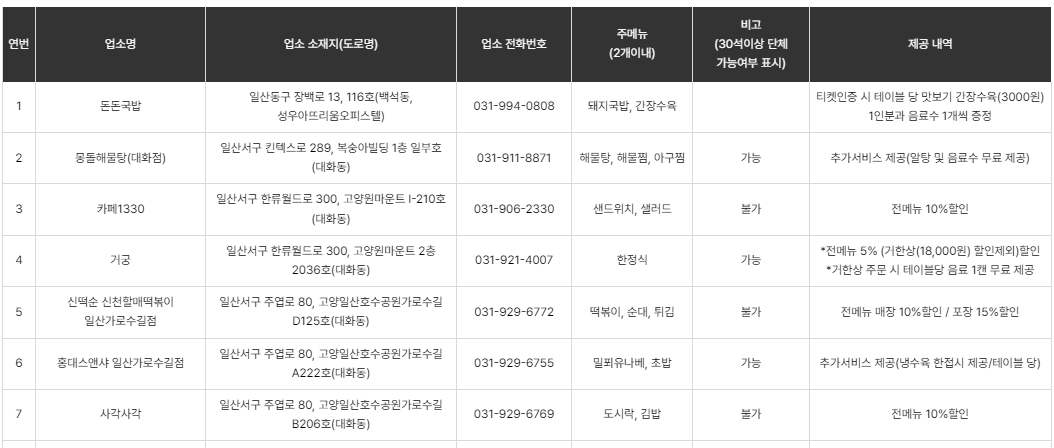 이외로 이번 박람회와 제휴를 맺은 식당들도 많은데요! 고양국제꽃박람회 협업 음식점으로 박람회 관람 후에 방문하면 할인 및 서비스가 제공된다고 하니 확인하시길 바랍니다!