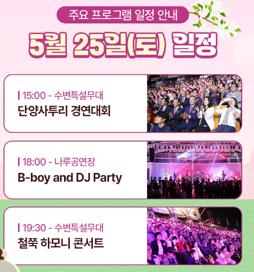 단약 소백산 철쭉제 프로그램은 5월 23일 목요일부터 5월 26일 일요일까지 진행됩니다!
