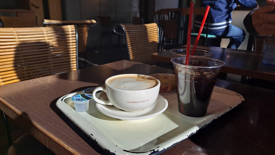 라떼를 마시는데요. 한 달 정도를 이렇게 지내니